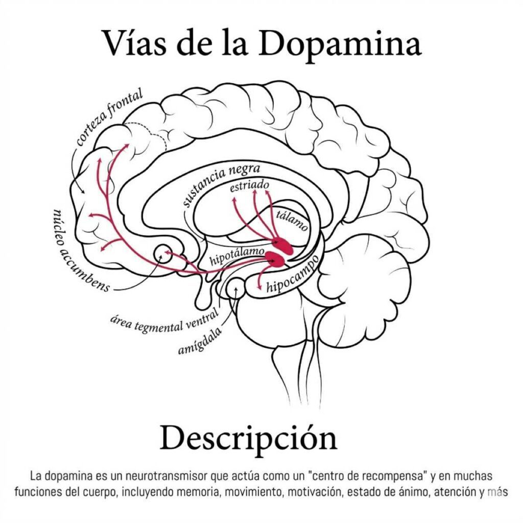 La clave de este fenómeno parece residir en la dopamina, el neurotransmisor responsable de la motivación y el placer. Los GLP-1 actúan sobre regiones cerebrales que gestionan la gratificación, lo cual explica por qué logran silenciar el «ruido alimenticio» (food noise) o los antojos de alcohol y nicotina.